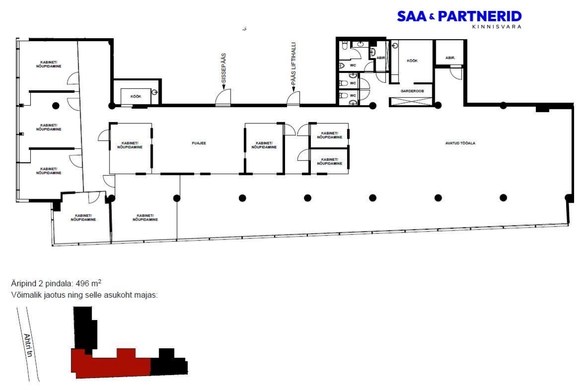 Kui see pind jääb suureks või väikeseks, siis on võimalik üürida kõrvalasuv väiksem pind (203 m2) või liita see üüritava pinnaga. Küsi selle kohta infot!