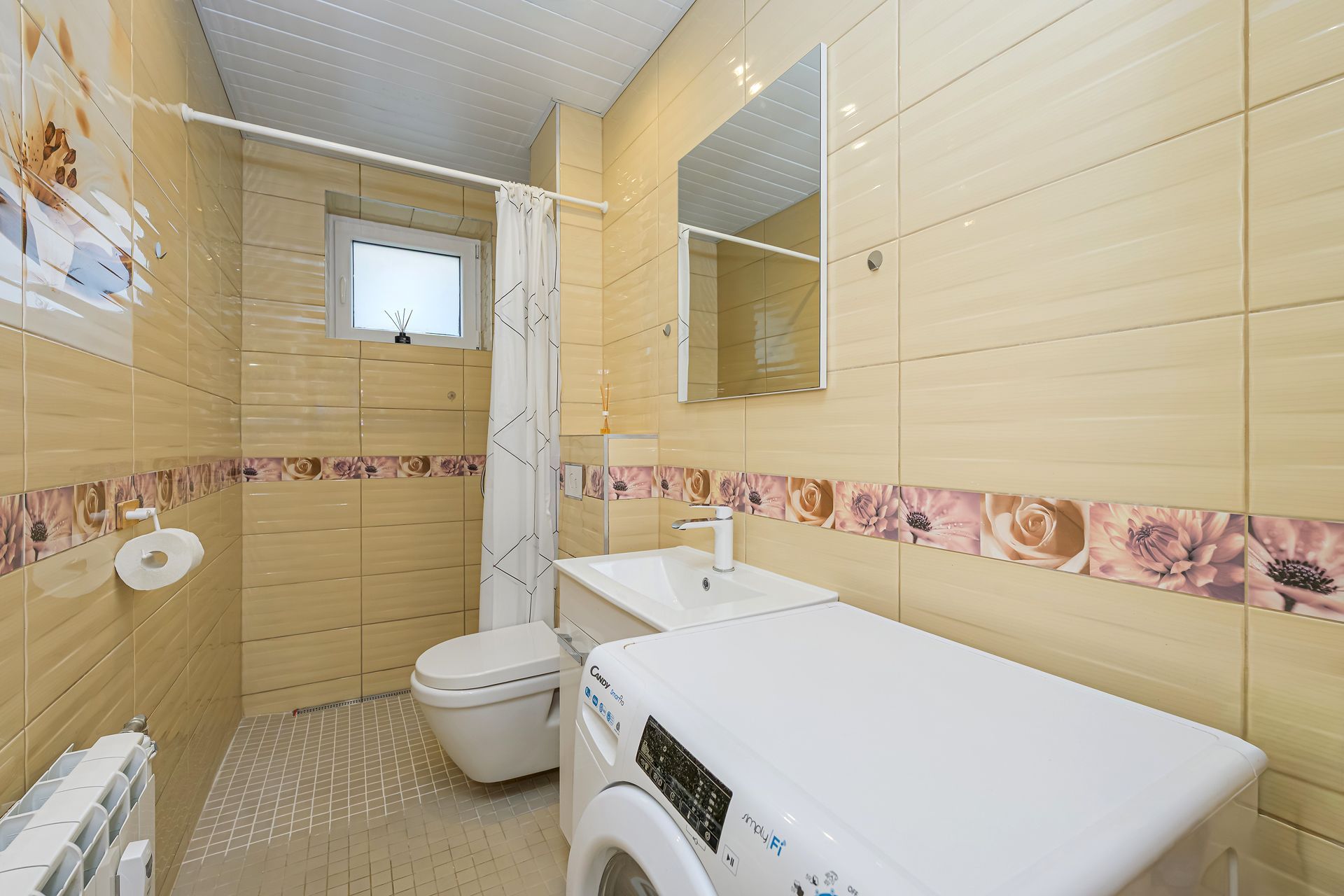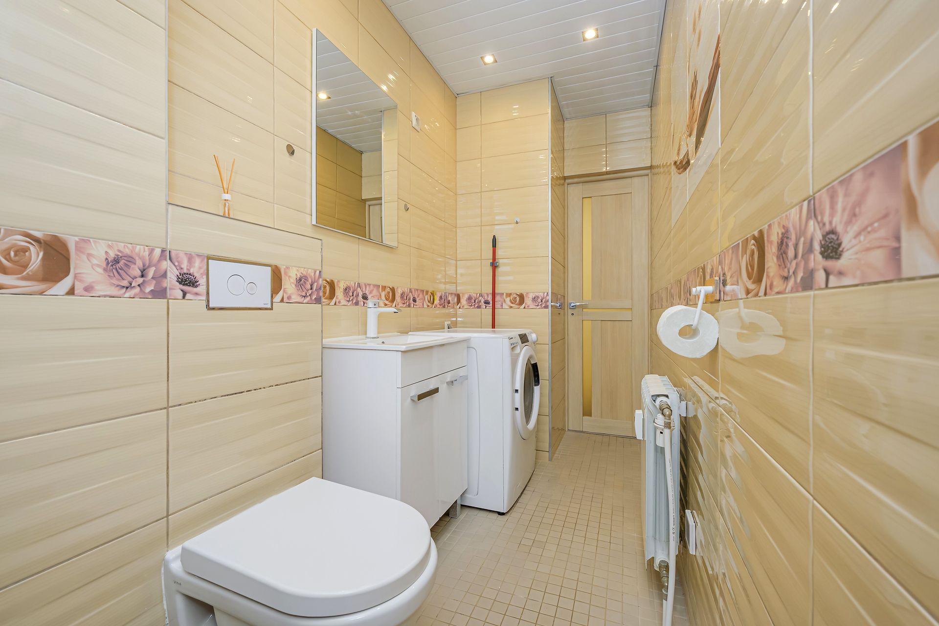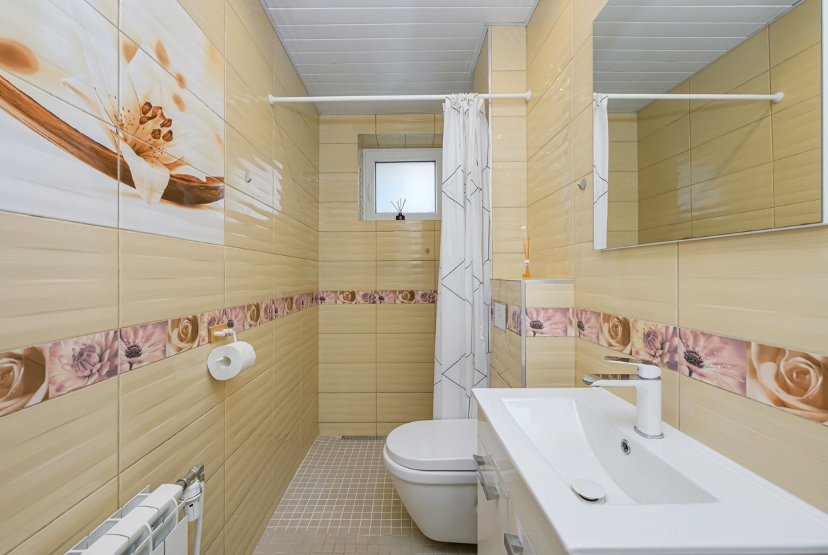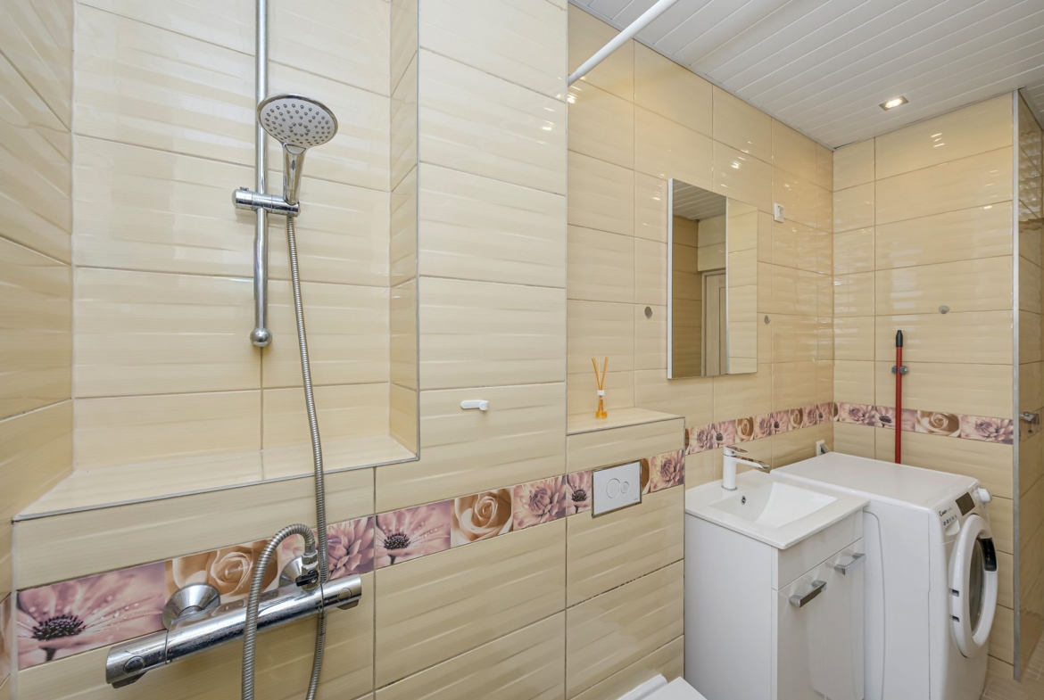 WC ja duširuum koos, põrandaküttega. Olemas pesumasin koos kuivatiga.