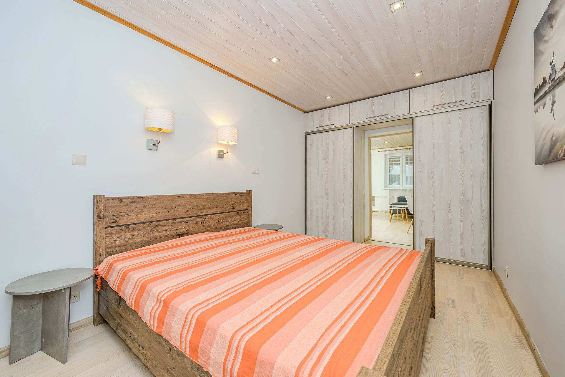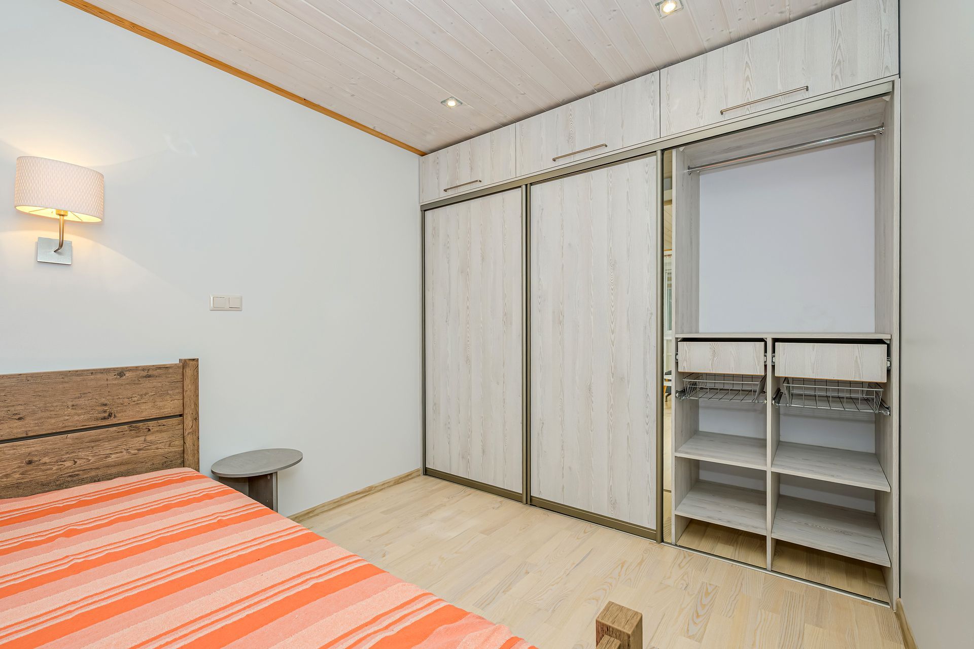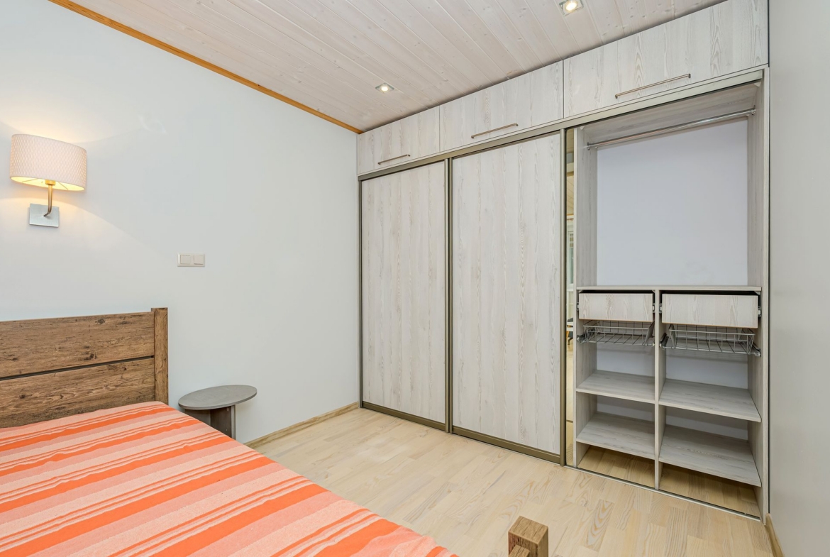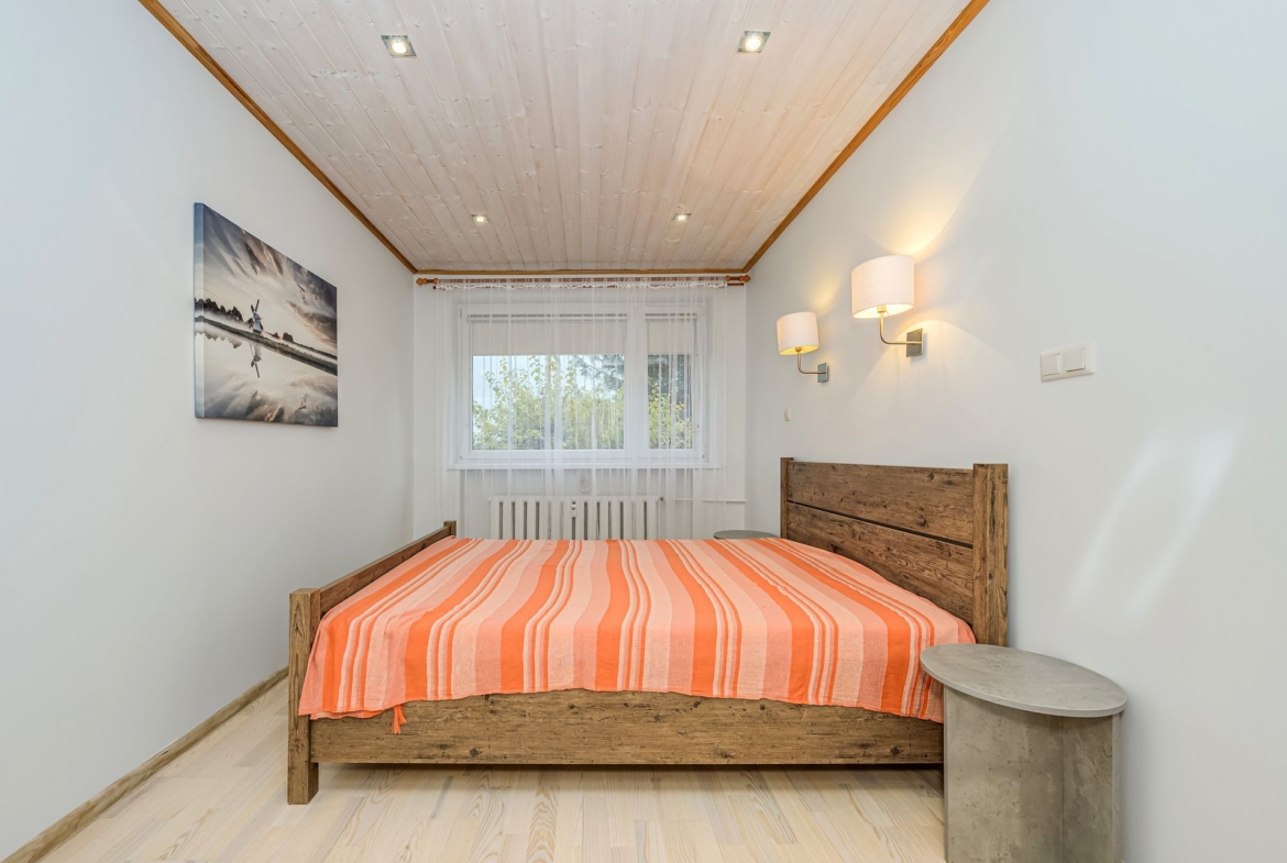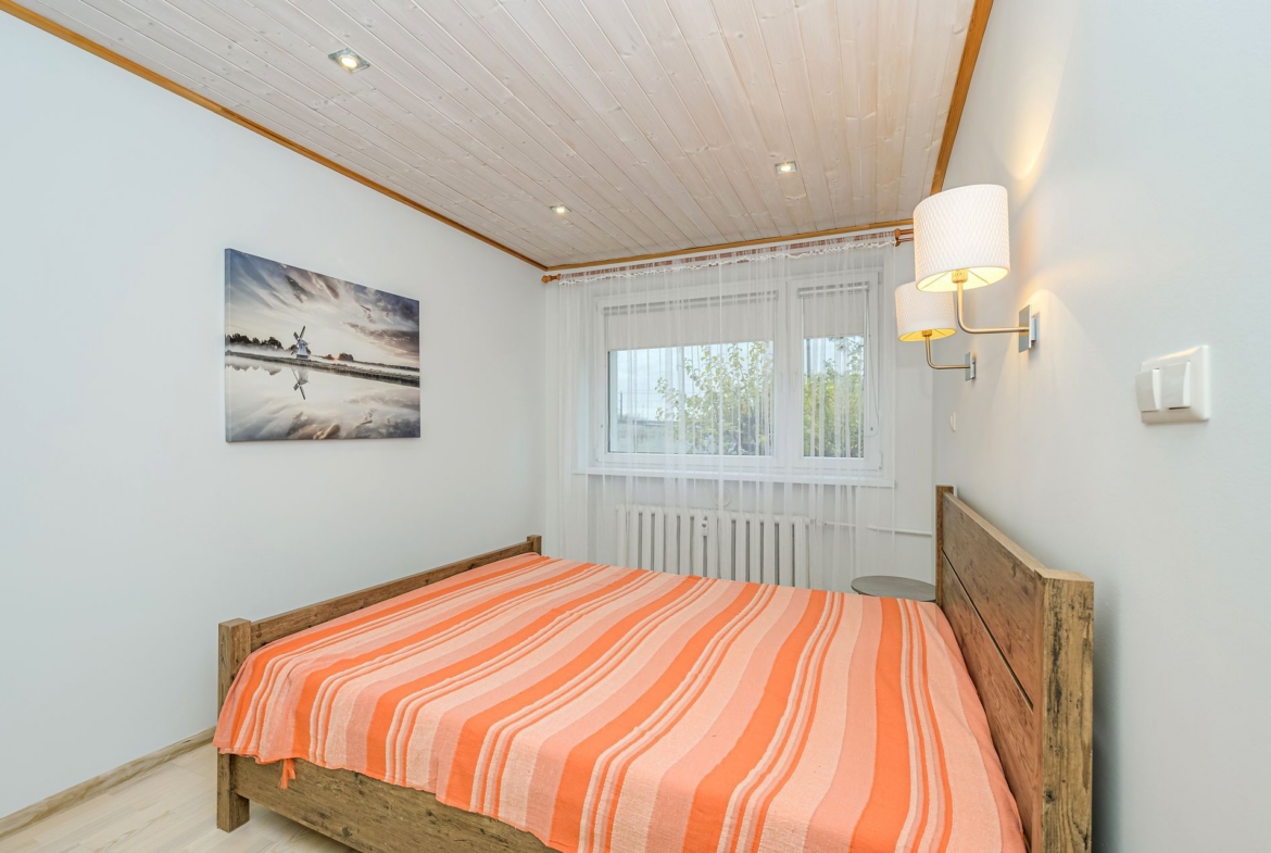 MAGAMISTUBA on avar, akendel pimendatud kardinad, mis tagavad sügava une. Magamistoas on ka suur garderoobikapp.