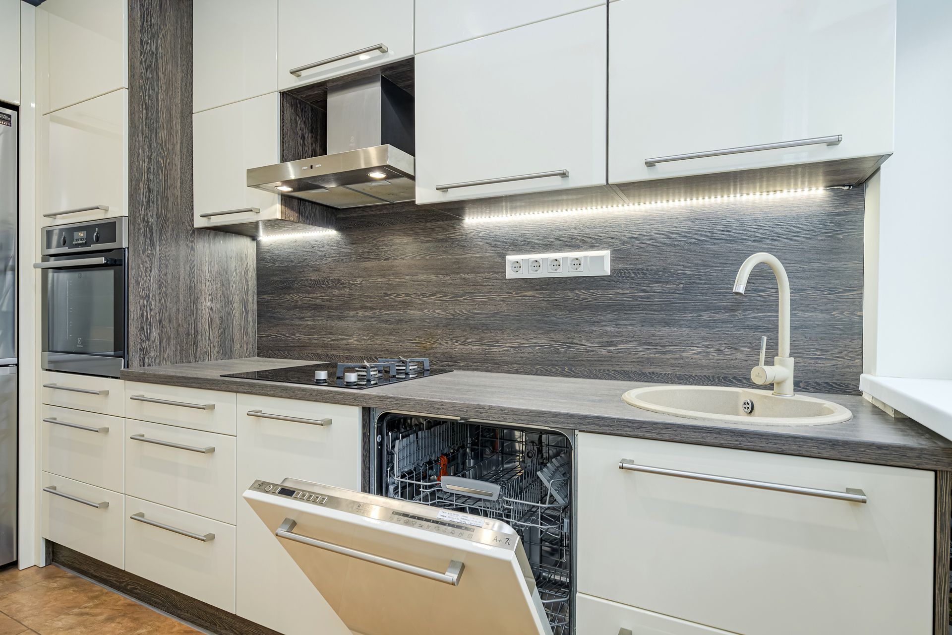 Suur nõudepesumasin ja induktsioonpliit koos gaasipliidi kasutamise võimalusega.