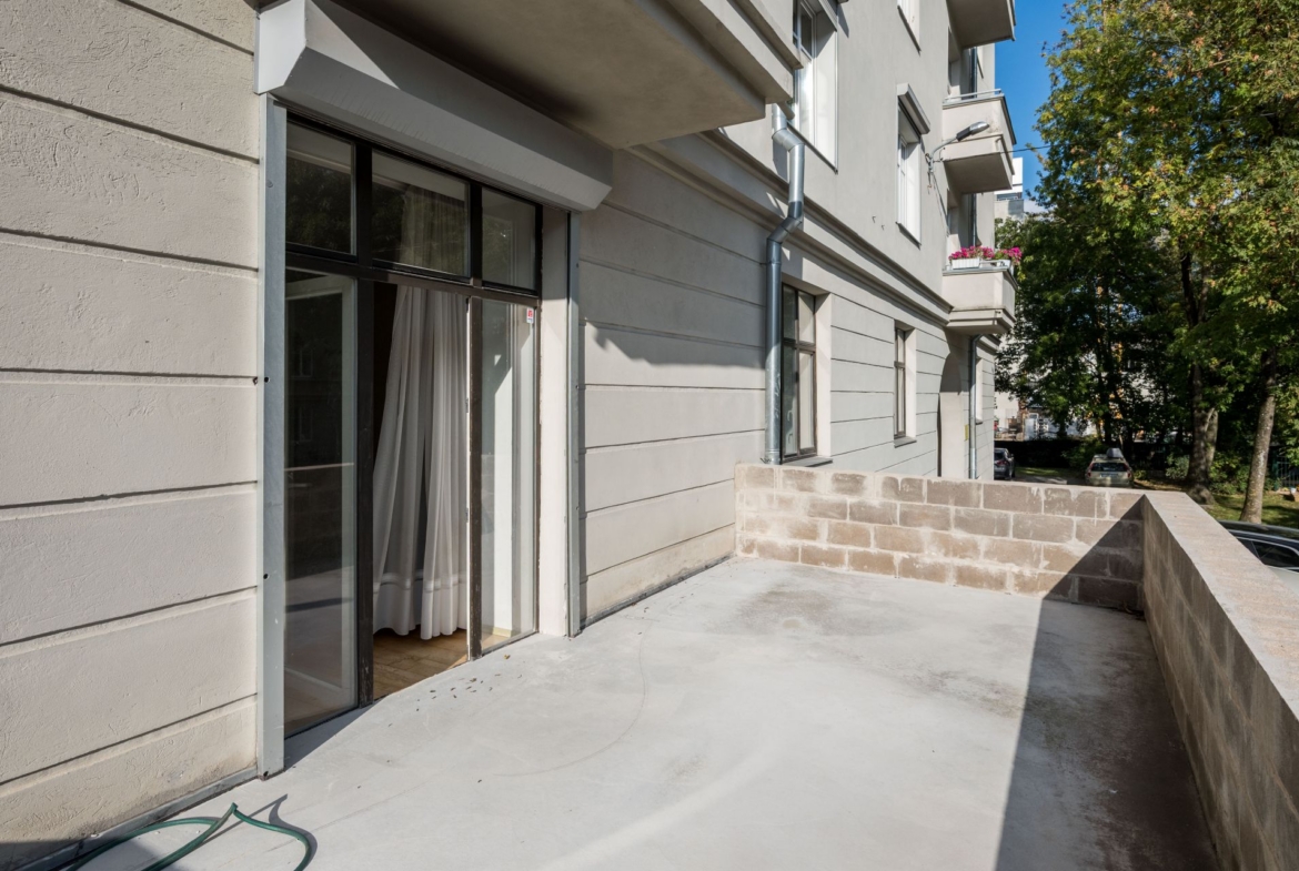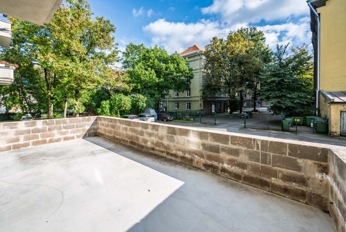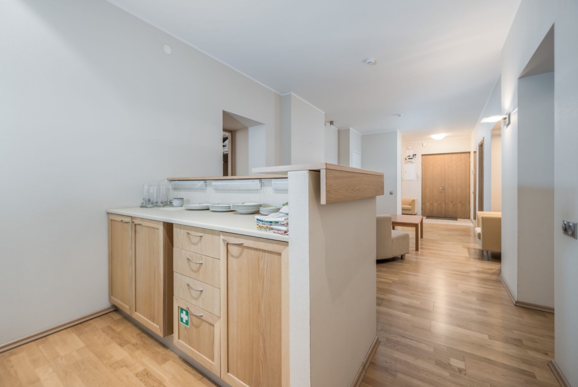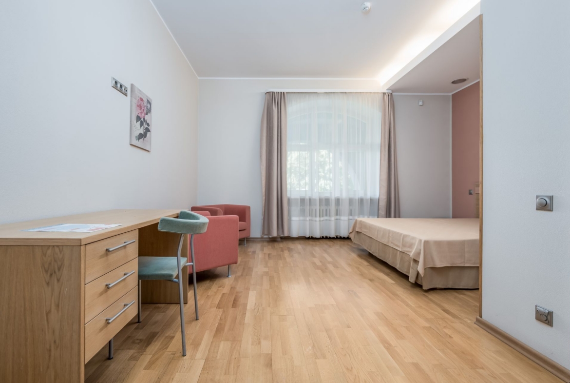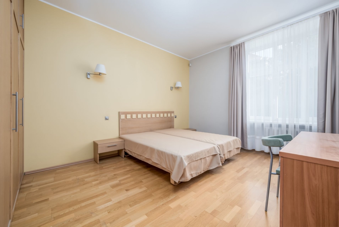 Tegemist omanäolise korteriga, mis olnud tubade kaupa välja üüritud ning millel on ühine puhkeala ja köök. Kõikidel tubadel on oma vannituba ja wc. Üks üüritav pind koosneb aga 2 toast ja seal on ka saun ning suur terrass, mis on hoovi ja päevase päikese poolne. Kui soov teha sellest ühe pere kasutuses olev kodu/korter, siis tuleks teostada ümberehitustöid.