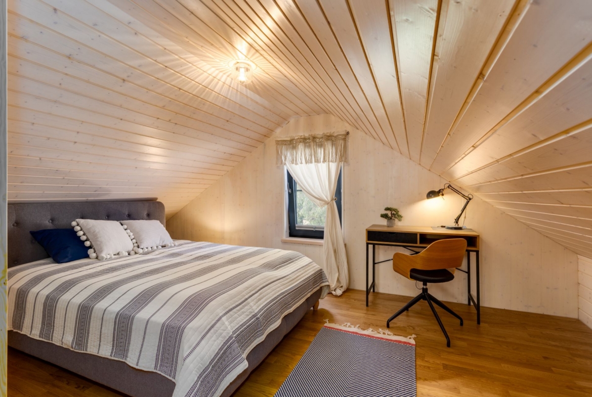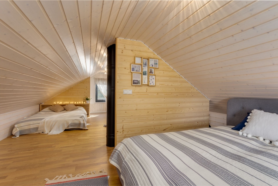 Katusealune pööning on väljaehitatud täiendavaks magamisalaks, mis on omakorda jaotatud kahte tsooni.