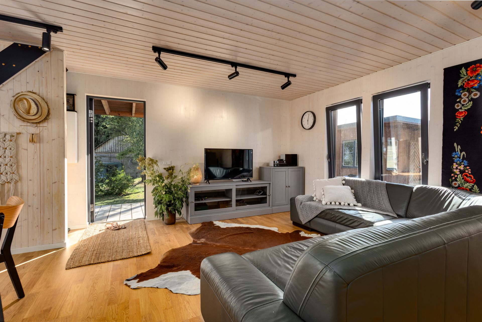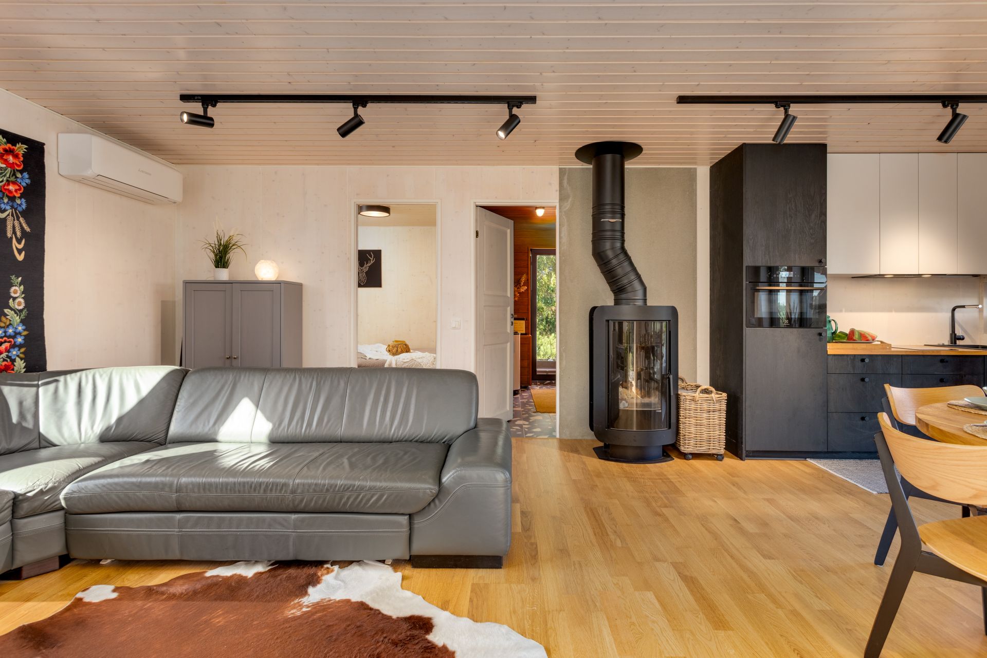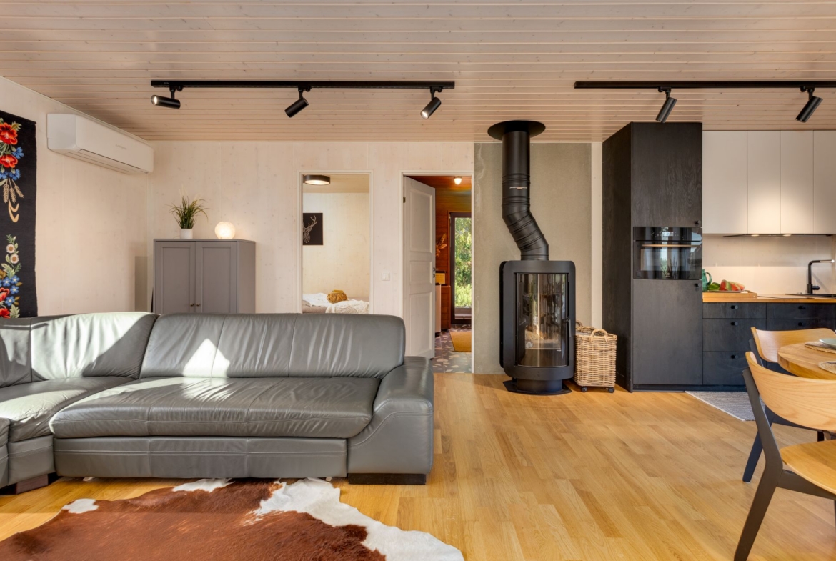Põhikorrusel elutuba-köök, magamistuba ning puitküttega saun eesruumi ning WC`ga.