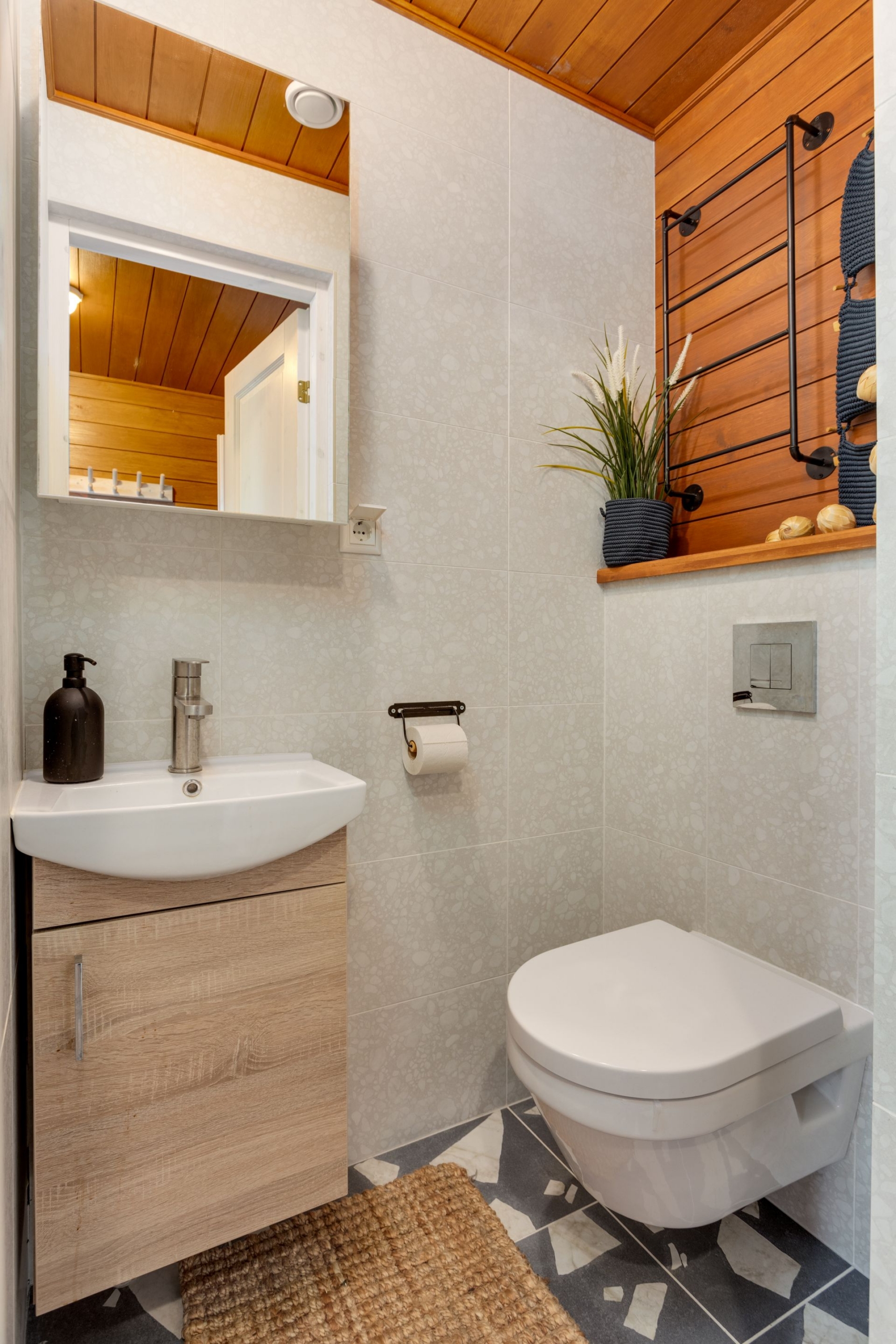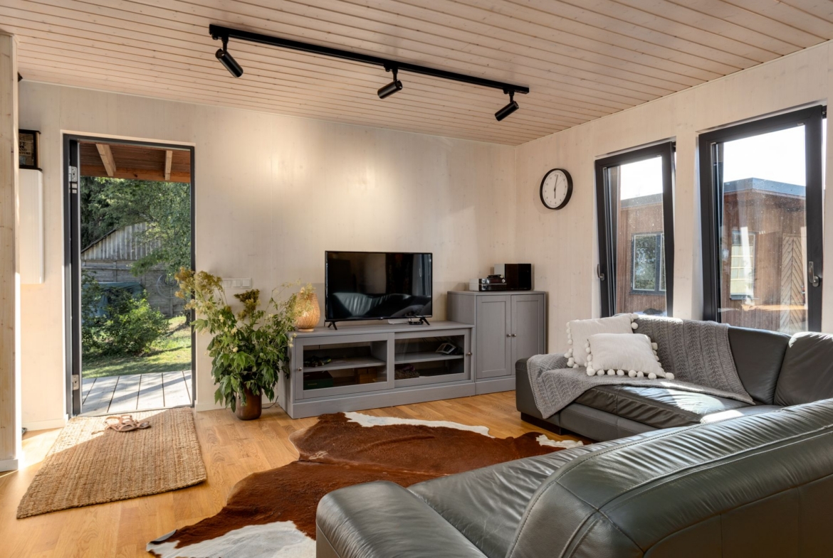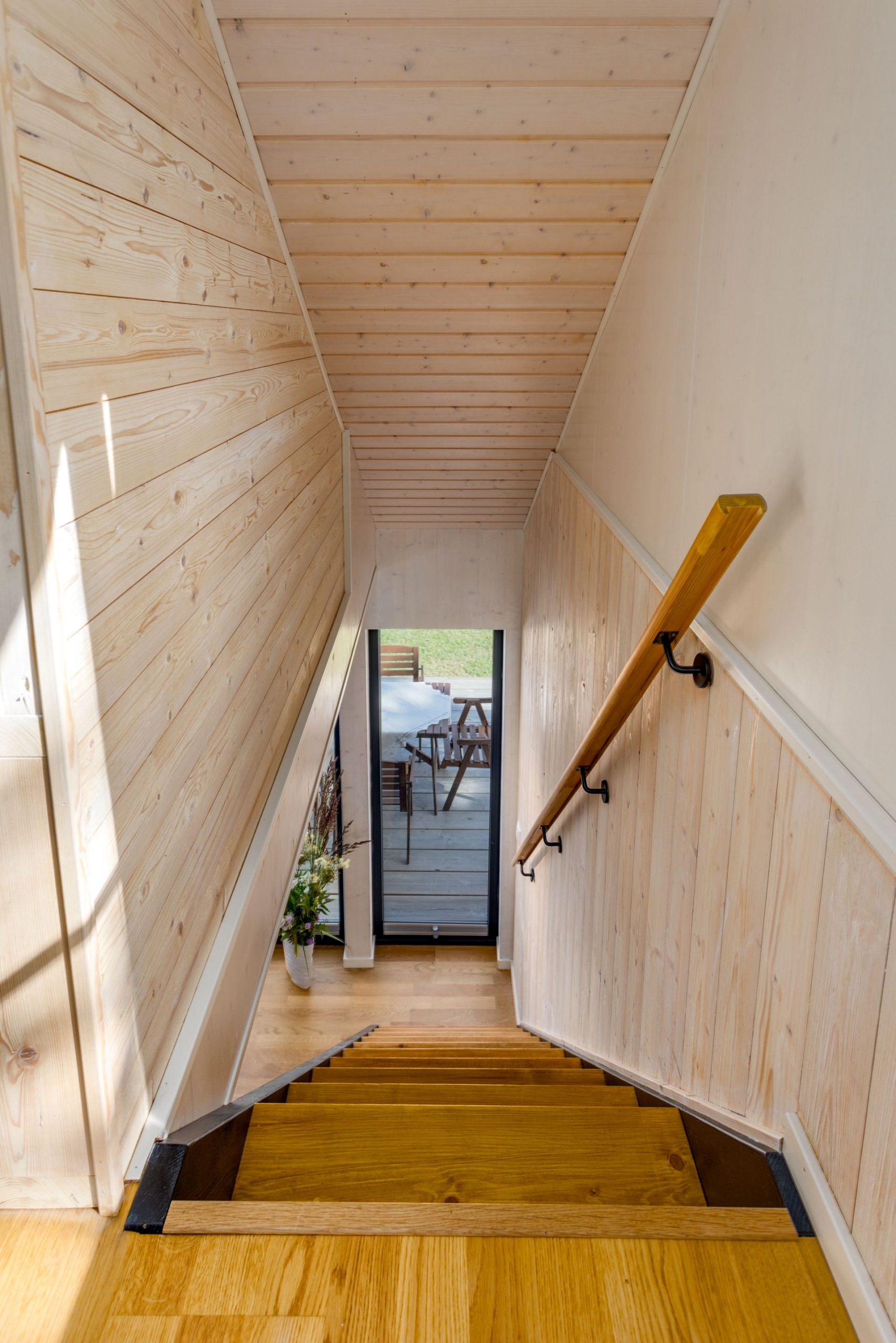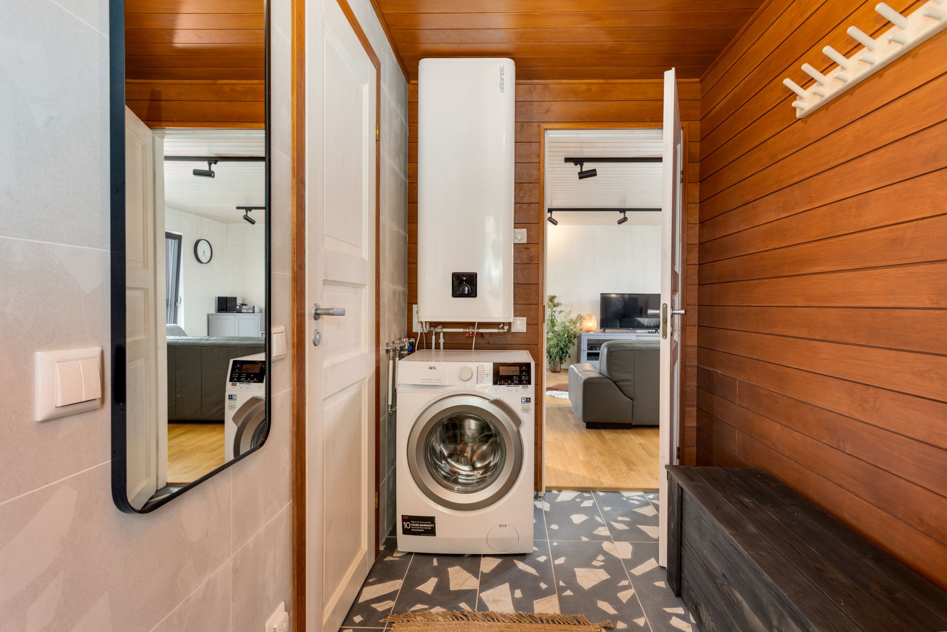 Põhikorrusel elutuba-köök, magamistuba ning puitküttega saun eesruumi ning WC`ga.